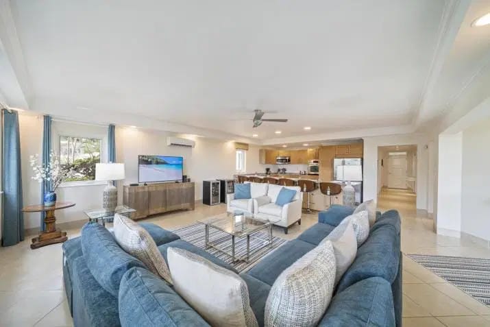 This stunning three-bedroom, three and half bath condominium is being offered for sale fully furnished creating a one-of-a-kind opportunity to own a beachfront condo on the South Coast of Barbados. Unit 104 features a large, covered patio overlooking the ocean, perfect for entertaining friends and family. The unit is finished to the highest standard throughout and decorated to truly capture the tropical feel of living on the beach.