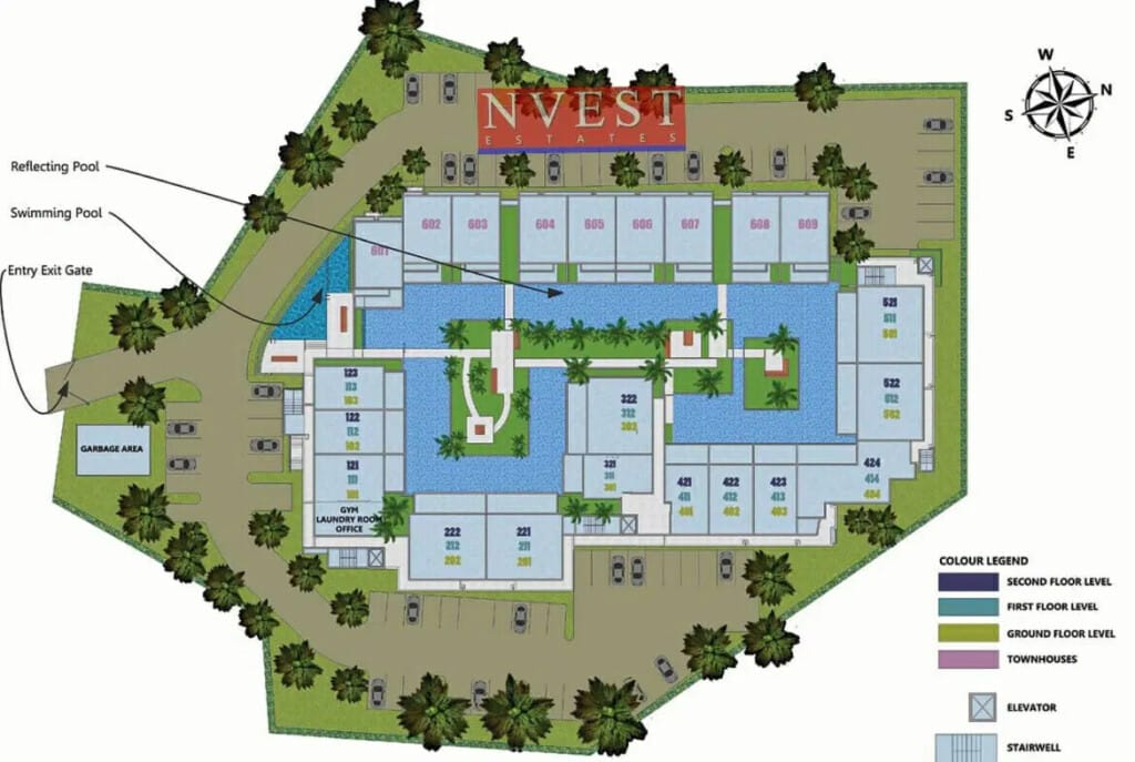 - The units all face inward to a “water garden” – a large reflecting pool, combining tranquility and natural beauty – with communal, landscaped ‘islands” within the water garden.