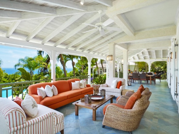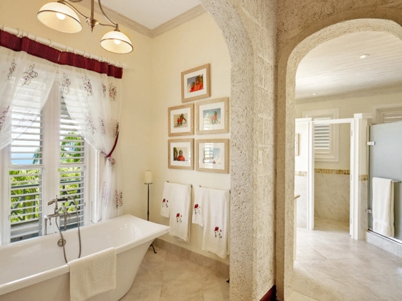 Crafted from coral stone, this architectural gem blends timeless Barbadian elegance with contemporary tropical living. Vibrant landscaping, including palms and bamboo, enhances the villa’s peaceful setting. Expansive covered terraces invite relaxation, while the heated infinity-edge pool provides the perfect vantage point for enjoying the panoramic scenery.