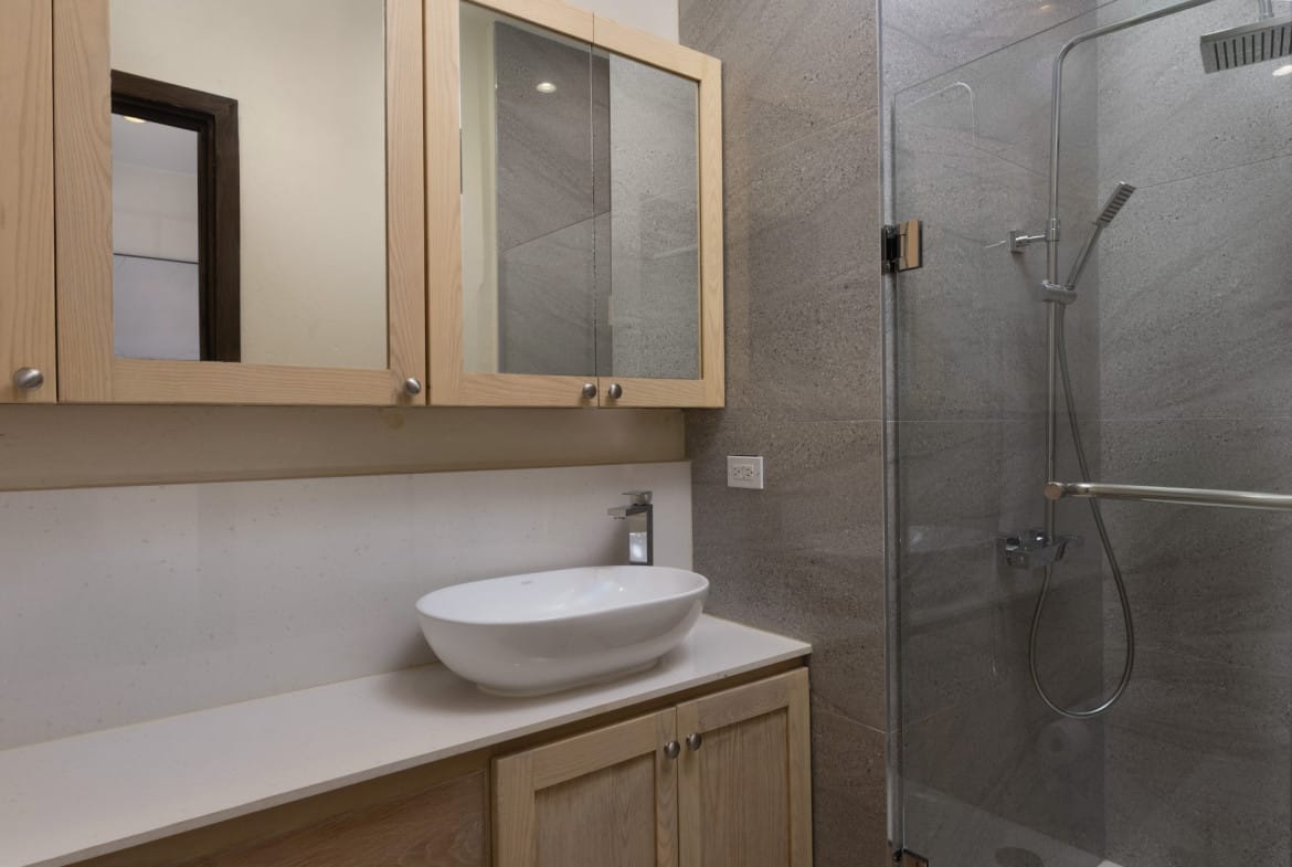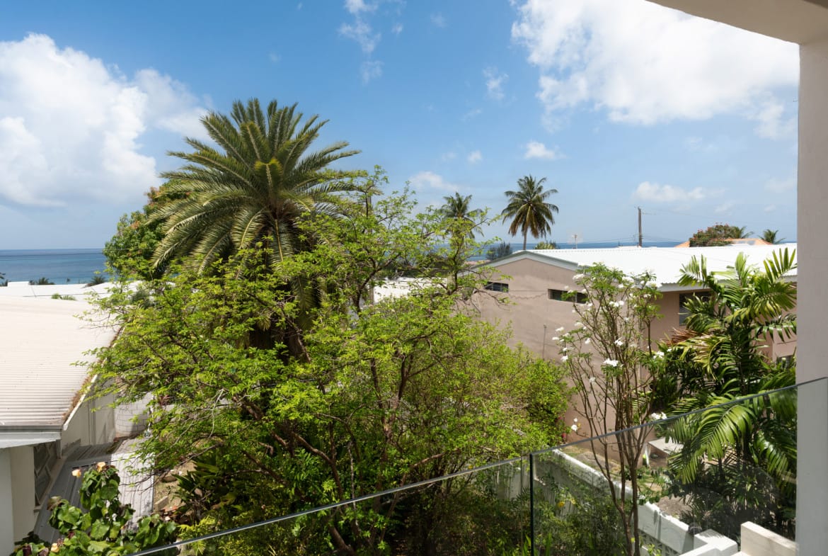 The main floor boasts soaring ceilings, four spacious bedrooms and three bathrooms (including two en-suites), a bright day room, elegant living area, and a chef’s kitchen complete with coral stone detailing, white mahogany cabinetry, and a large porcelain-topped island. A cozy reading nook and multiple living spaces capture serene views of the Caribbean Sea, while the primary suite opens onto a private balcony.
