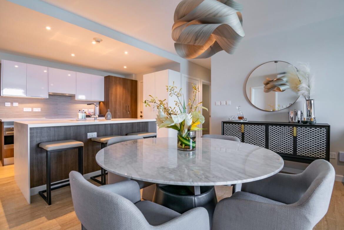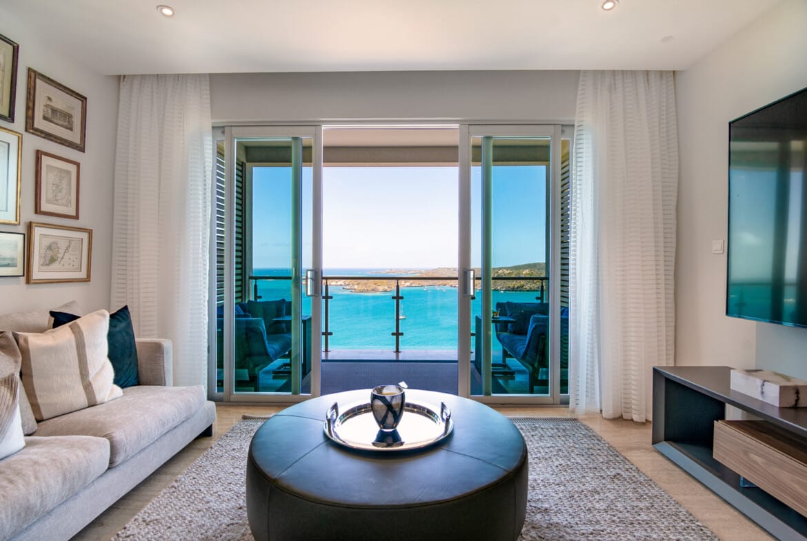 This beautifully crafted two-bedroom, single floor abode features a tastefully constructed modern kitchen, dining, living room and balcony. It also has a master bedroom with ensuite bathroom, guest bedroom with twin beds (or queen bed) and guest bathroom. These fully self-contained condo apartments feature picture-perfect ocean views, marble floor interiors, high-end appliances and equipment and access to resort amenities such as spa, gym, onsite beach and bar, secure gated private compound. Owners and guests of the Beau Jardin condominiums will have access to a gorgeous shared infinity pool and lounge area complete with outdoor grilling station and swim-up bar.