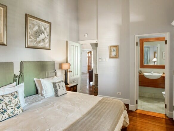 Downstairs is the fifth bedroom with a king sized bed and spacious living area. The bedroom looks directly onto the garden and offers ease of access to the pool and privacy. The living area offers a pool table, day beds and also leads directly to the gardens and beautiful ocean views.