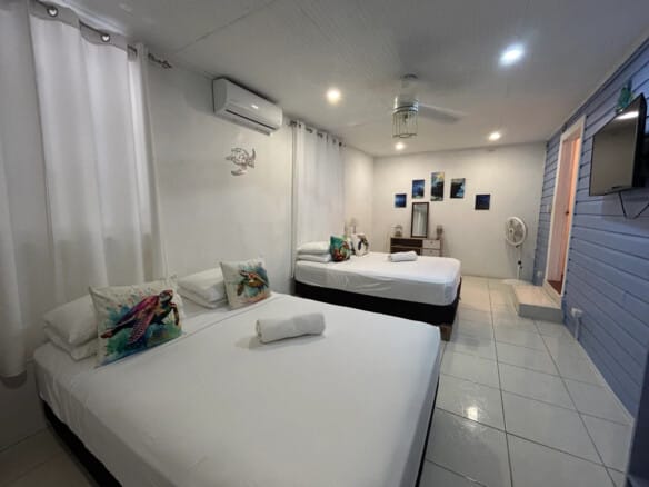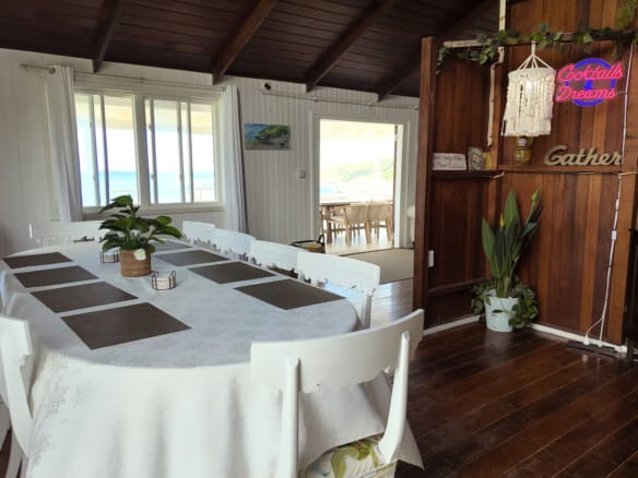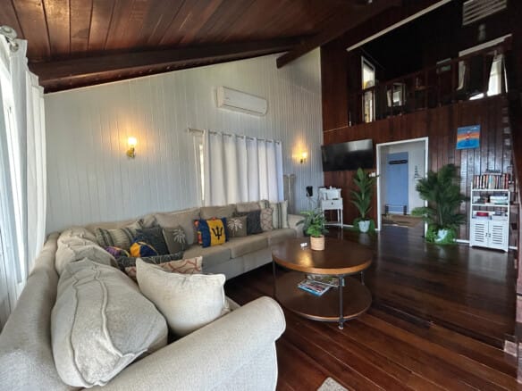 A light-filled foyer welcomes you into the home, where the main level features an inviting guest bedroom and a fully renovated bathroom. The open-plan living and dining areas, complete with a stylish mini-bar, flow seamlessly through French doors onto a spacious oceanfront terrace. Overlooking an infinity-edge pool, this outdoor haven provides the perfect backdrop for elegant entertaining or serene relaxation amid the island’s cooling breezes.