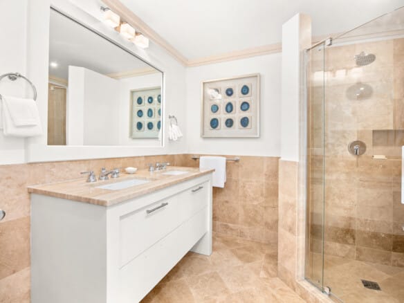 The first floor showcases a modern and sophisticated open-concept living and dining area, with expansive floor-to-ceiling sliding doors that lead to a covered, south-facing terrace overlooking the pool and wraparound patio. This level also includes a secure, lockable owner’s storage room. With exceptional furnishings and meticulous maintenance, this property has never been rented, making it the ideal move-in-ready home for discerning buyers.