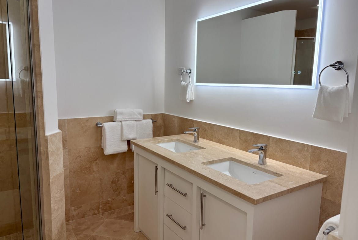 Only two stunning townhouses remain in the highly sought-after Mahogany Heights community at Royal Westmoreland, Barbados. These brand-new, 2,530 sq. ft. semi-detached homes offer breathtaking views of the 12th fairway and the Caribbean Sea, private pools, and sleek contemporary design.