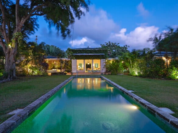 Further outside are two charming chattel houses and a guest cottage, all with en suite bathrooms as well as an elegant garden gazebo complete with a wet bar. Two covered terraces on the north and south wing bedrooms offer additional privacy and comfort, while on the seaside, guests can enjoy safe swimming and snorkeling in the crystal-clear waters.