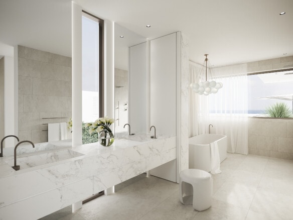 Breezy coastal meets contemporary luxury at Ocean Grove. Seamlessly integrated open plan living encourages effortless entertaining and relaxation, with ocean or water views as the idyllic backdrop. Each home floats amongst water at every intersection, from the front entrance waterfall, 2,412 sq ft saltwater pool with sunken pool lounge, and fire pit, to a 12’ internal waterfall as well a private master rooftop pool with stunning sea views.