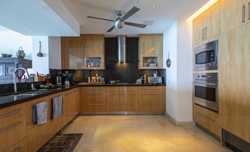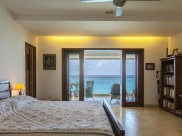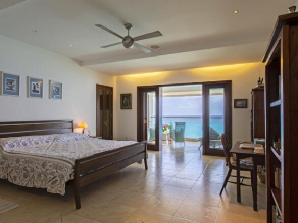 Flowing from the living area, connects seamlessly with glass balustrades to a 40-ft private terrace which offers spectacular sea views. This terrace also connects to the oversized master bedroom which features a walk-in closet and en-suite bedroom with a natural stone double vanity, spa bath and an impressive sky shower. The guest bedrooms are spacious and comfortable, and both have their own walk-in wardrobes and dressing areas, as well as, luxurious en-suite bathrooms. This apartment also has 2 elevators, one of which is glass front offering ocean views.