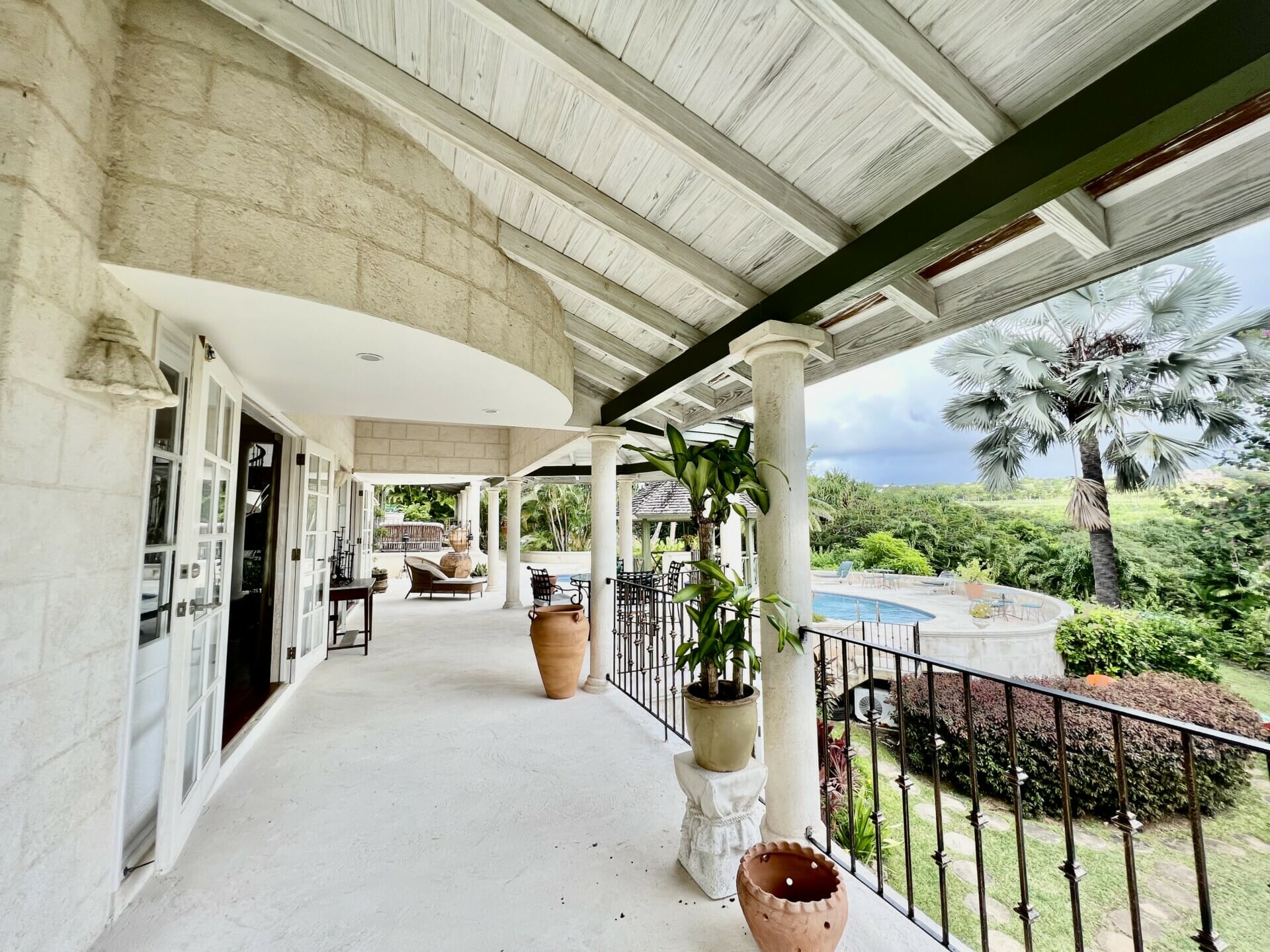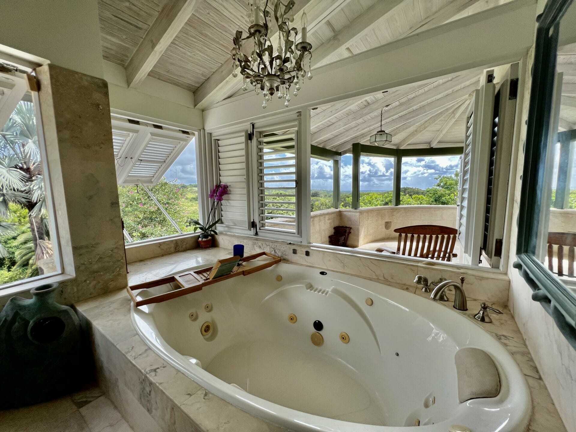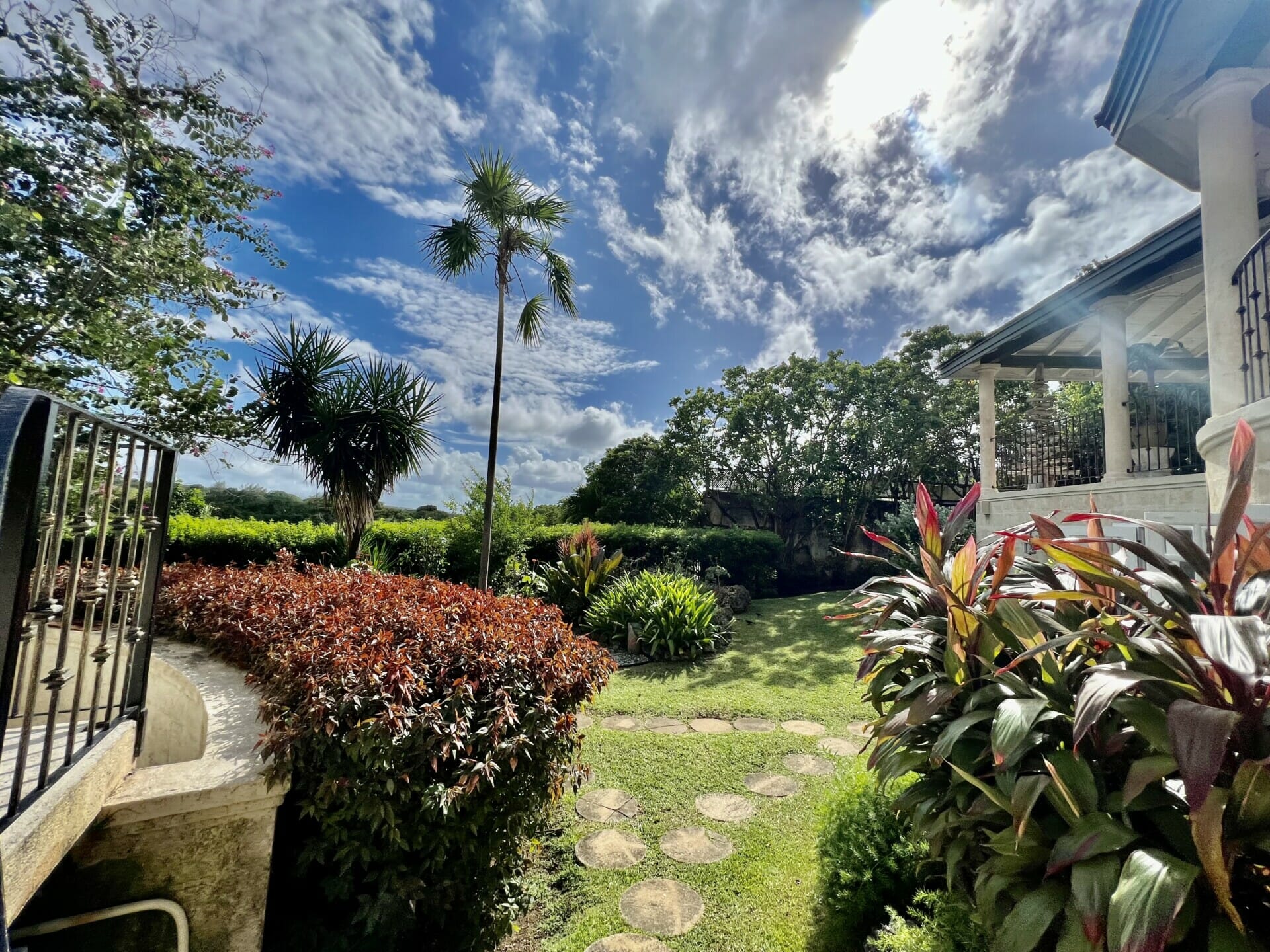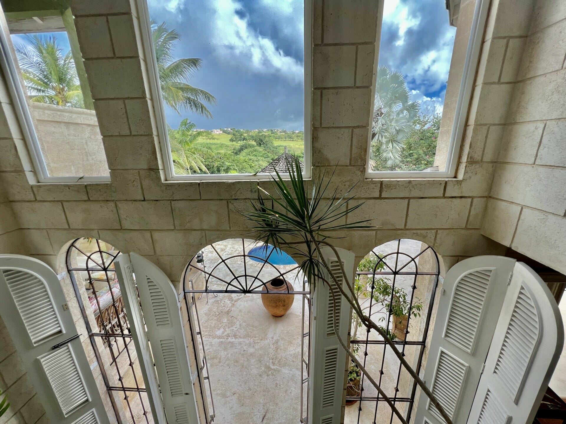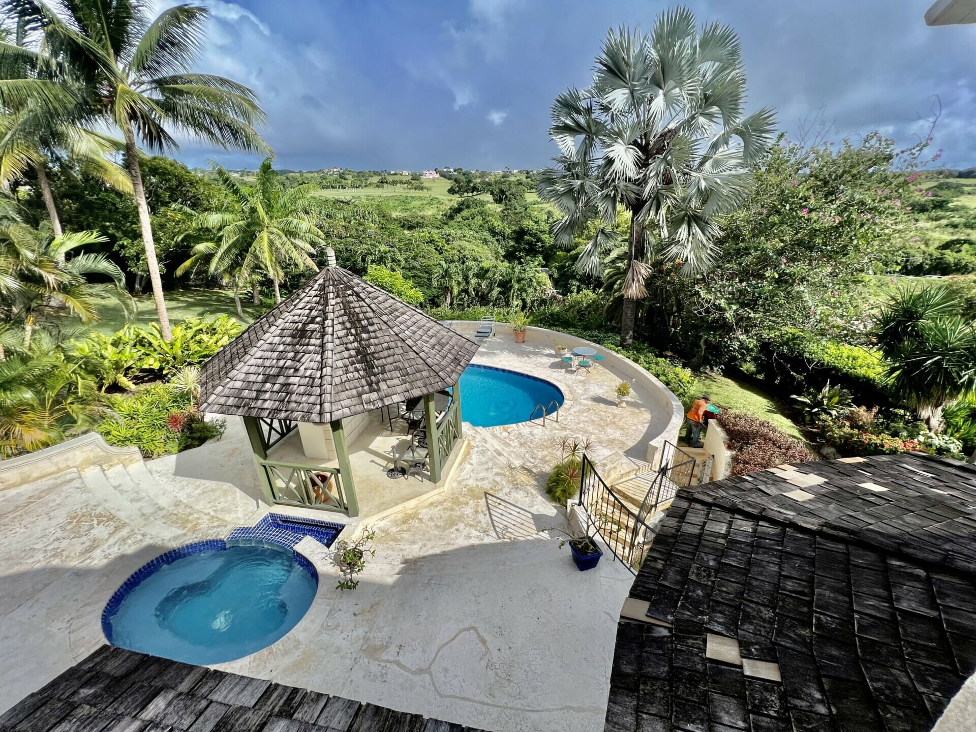 Here lies a free flowing 5-bedroom gated home minutes from Holetown sitting on an acre of land which opens up to views overlooking the Royal Westmoreland Golf Resort. This well lit home is fashioned with high ceilings and open spaces both indoor and outdoor. Taking advantage of the cool breezes with the backdrop of mature tropical landscape makes living the Caribbean lifestyle easy.