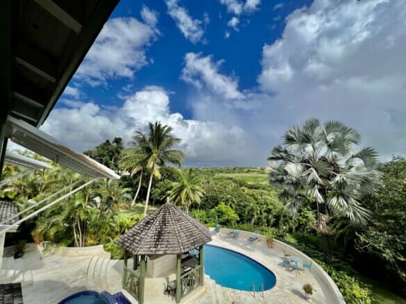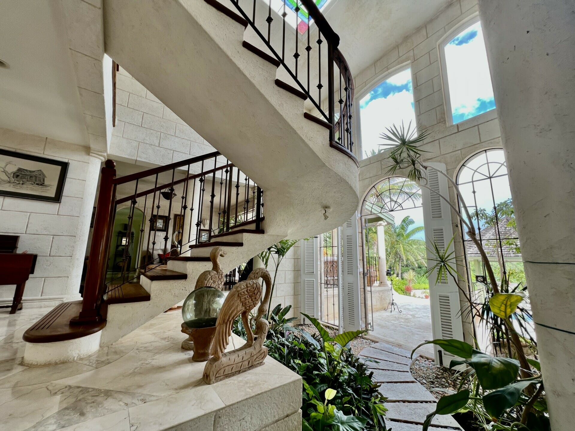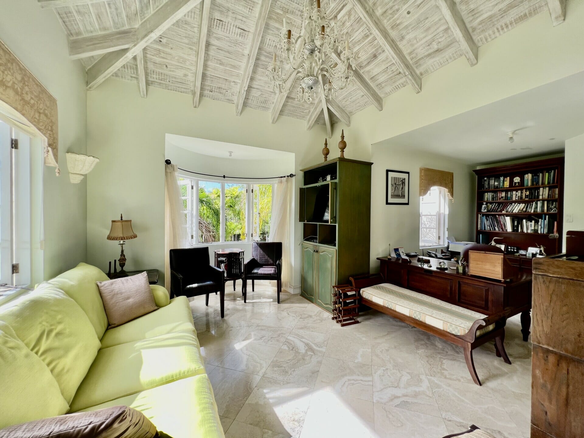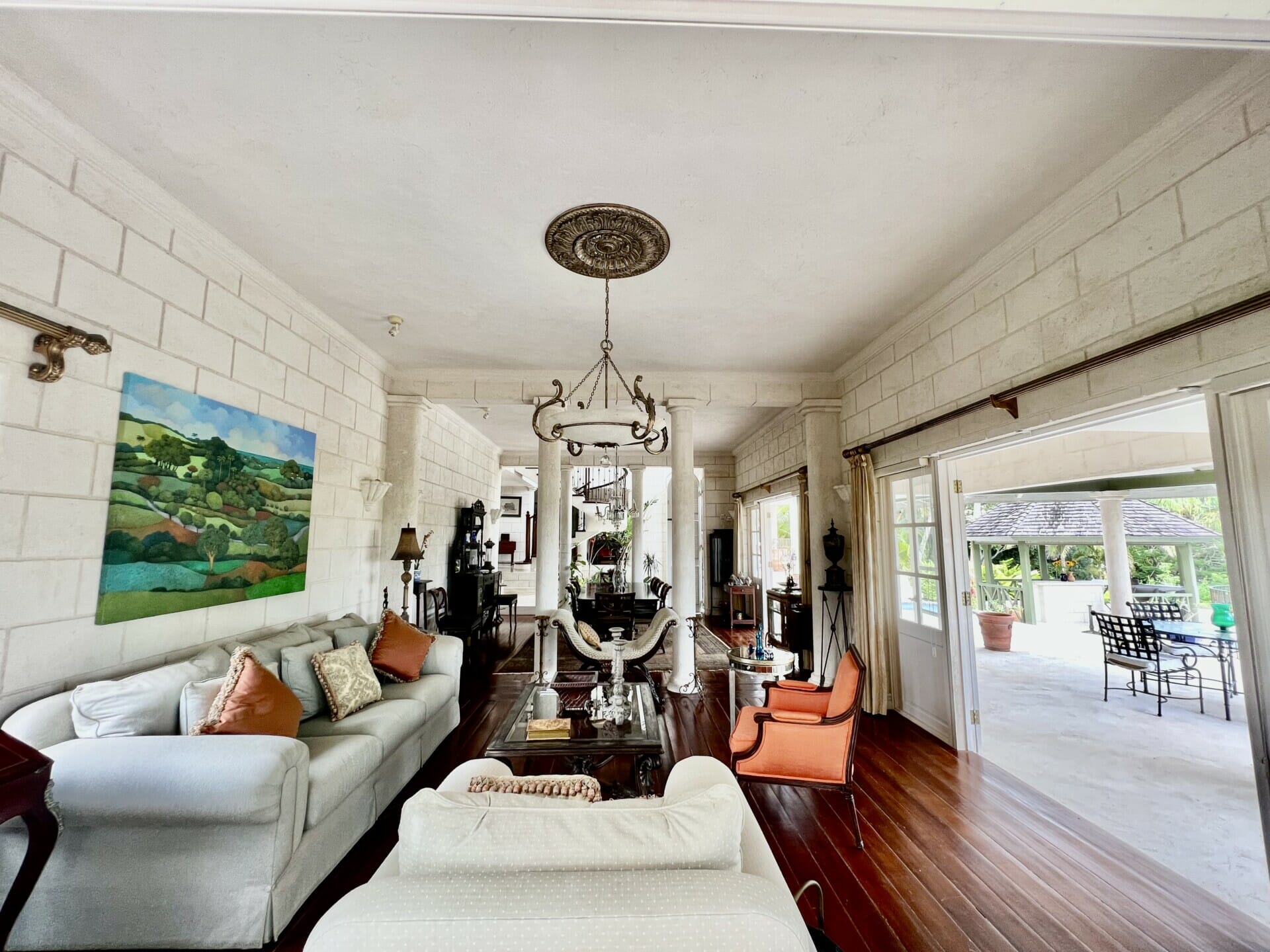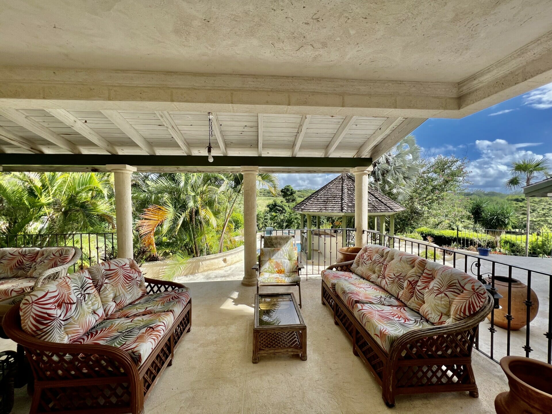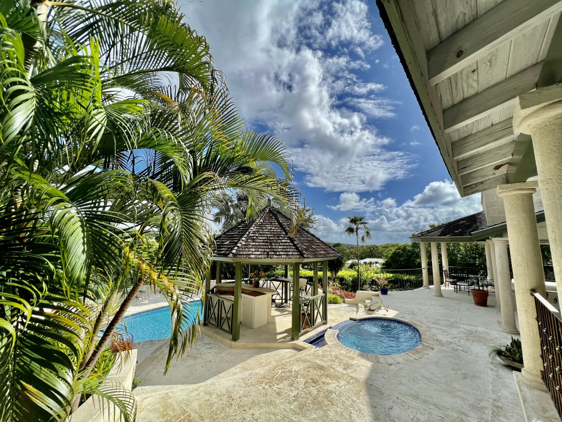 Here lies a free flowing 5-bedroom gated home minutes from Holetown sitting on an acre of land which opens up to views overlooking the Royal Westmoreland Golf Resort. This well lit home is fashioned with high ceilings and open spaces both indoor and outdoor. Taking advantage of the cool breezes with the backdrop of mature tropical landscape makes living the Caribbean lifestyle easy.