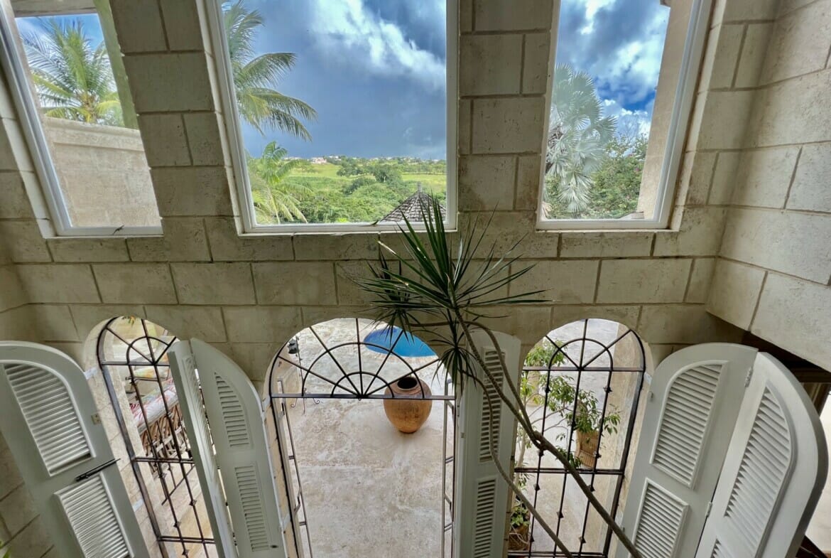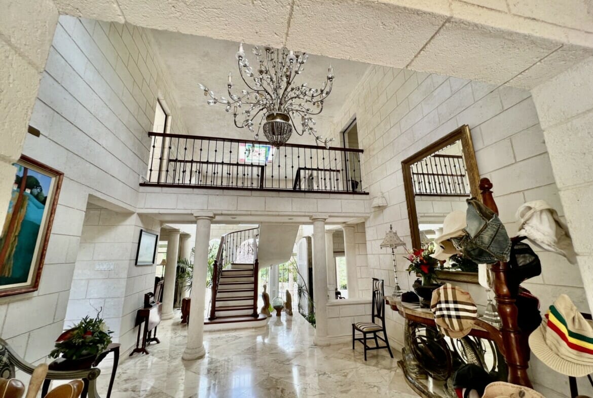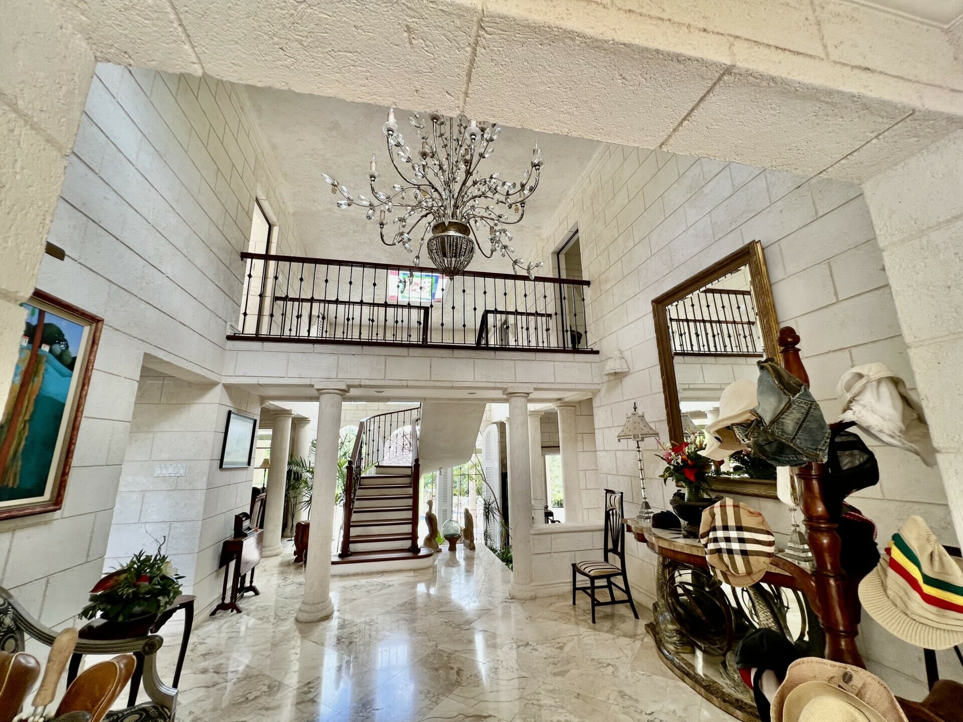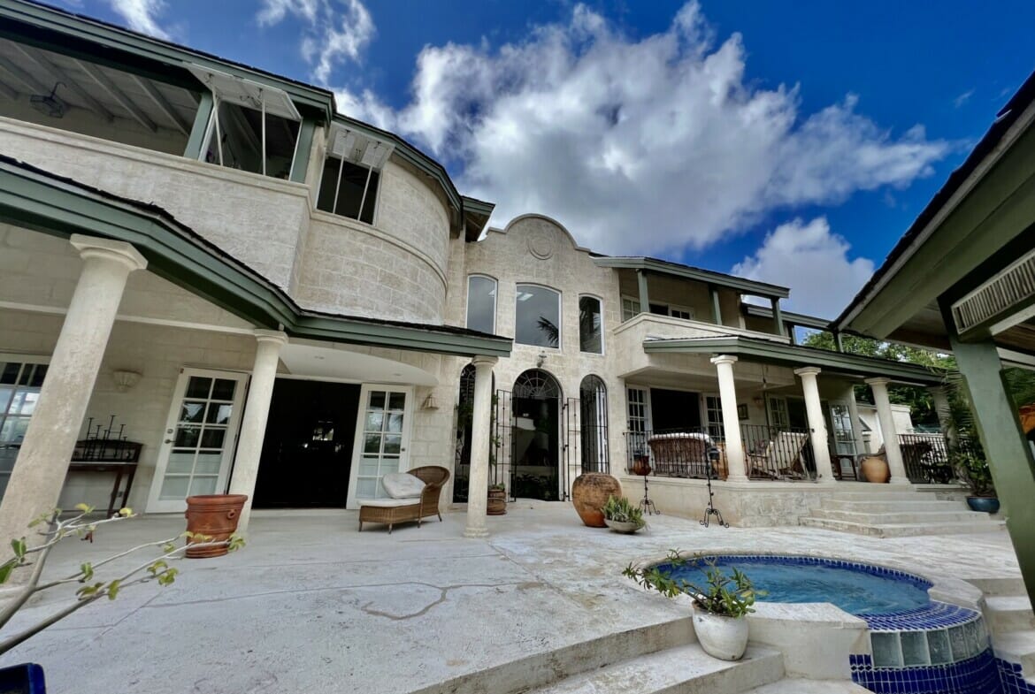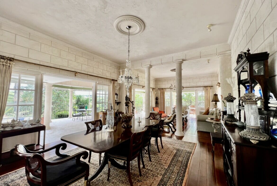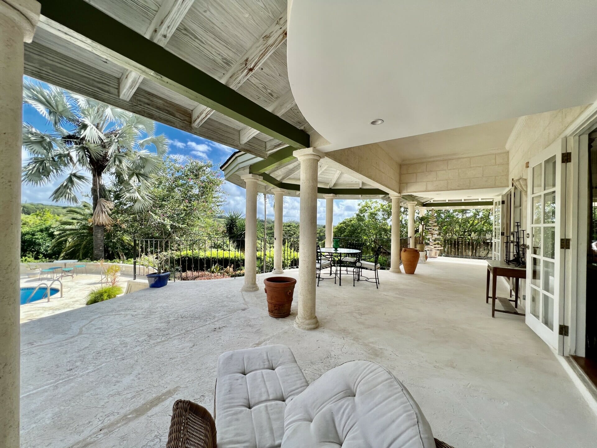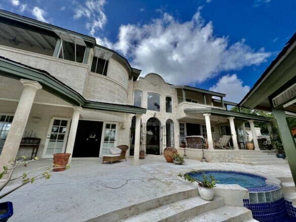 Here lies a free flowing 5-bedroom gated home minutes from Holetown sitting on an acre of land which opens up to views overlooking the Royal Westmoreland Golf Resort. This well lit home is fashioned with high ceilings and open spaces both indoor and outdoor. Taking advantage of the cool breezes with the backdrop of mature tropical landscape makes living the Caribbean lifestyle easy.