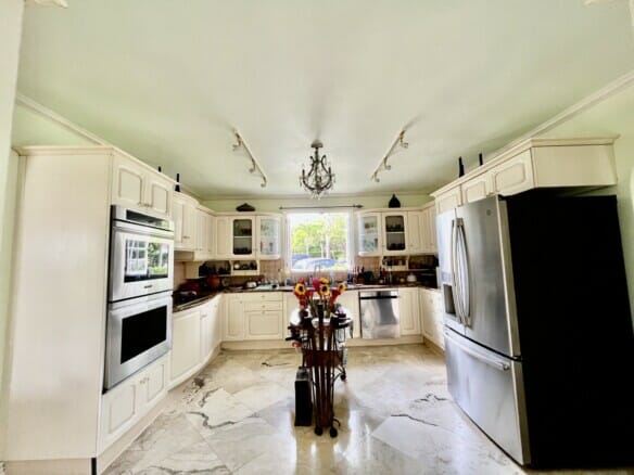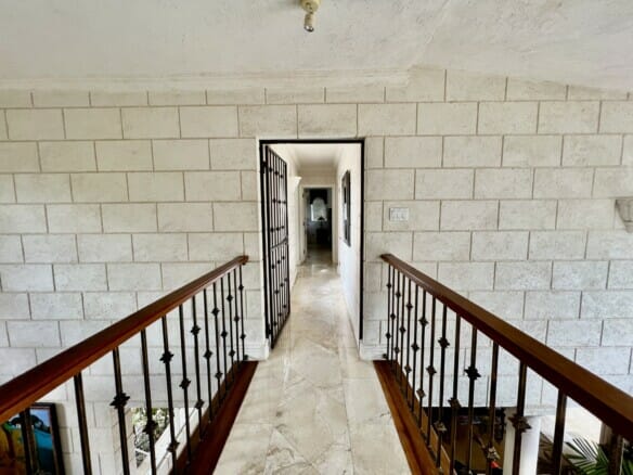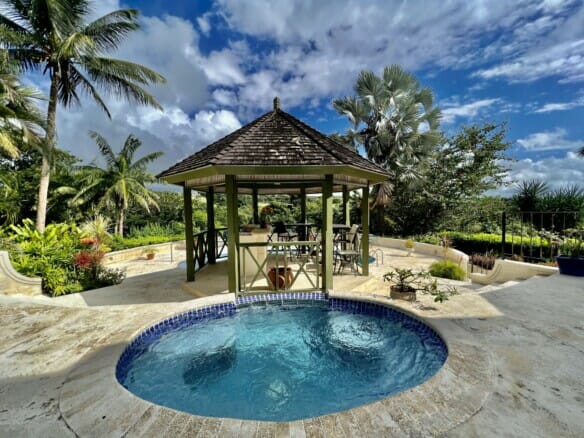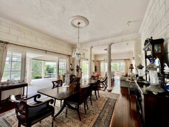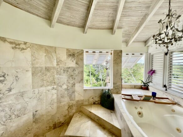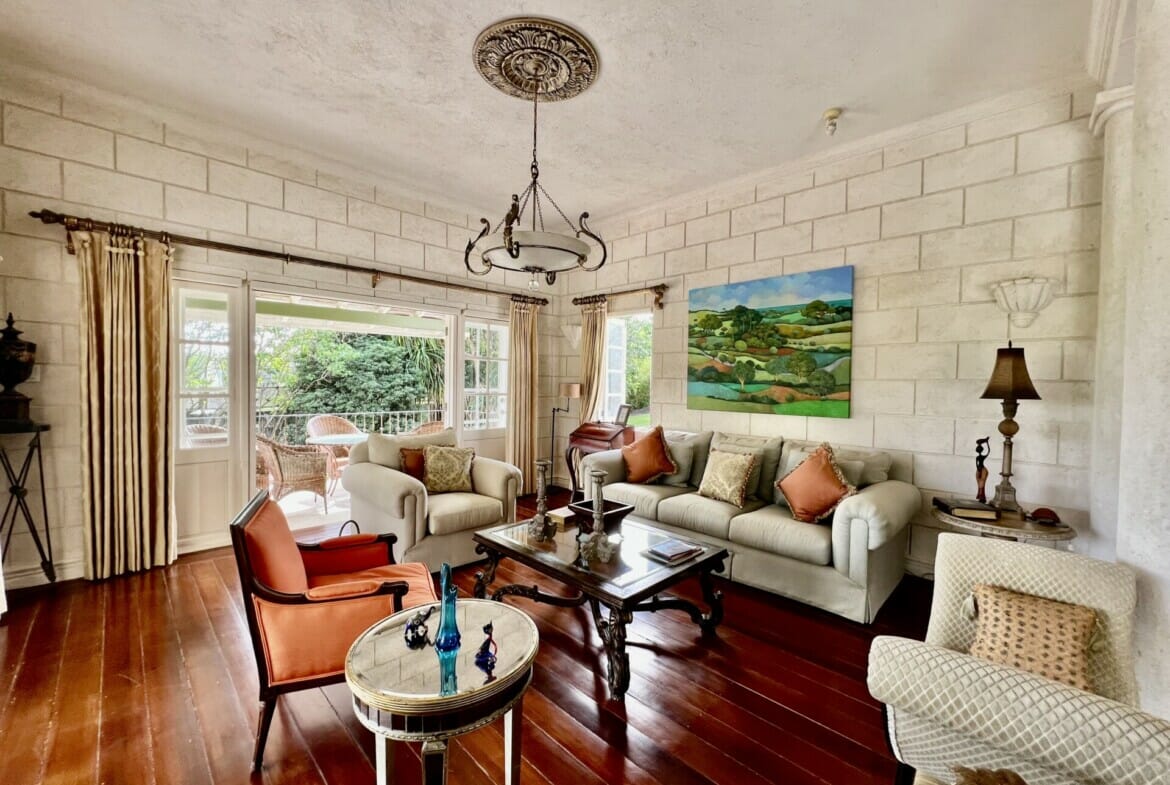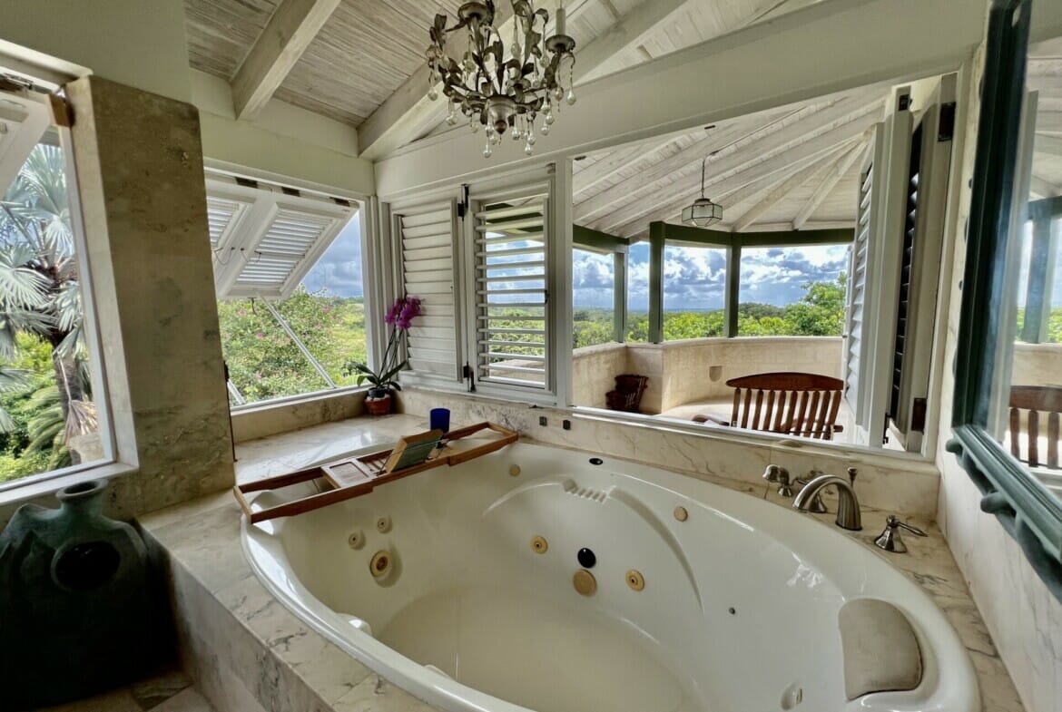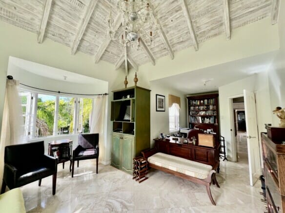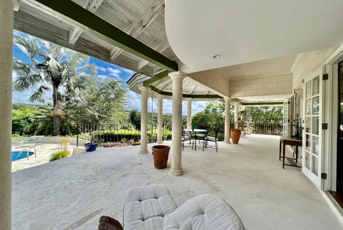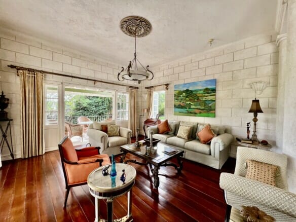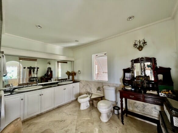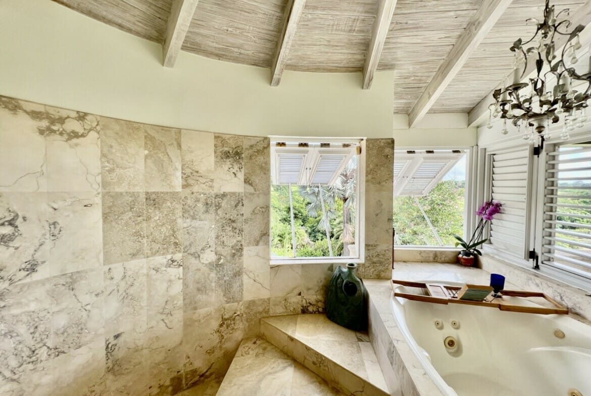 Here lies a free flowing 5-bedroom gated home minutes from Holetown sitting on an acre of land which opens up to views overlooking the Royal Westmoreland Golf Resort. This well lit home is fashioned with high ceilings and open spaces both indoor and outdoor. Taking advantage of the cool breezes with the backdrop of mature tropical landscape makes living the Caribbean lifestyle easy.