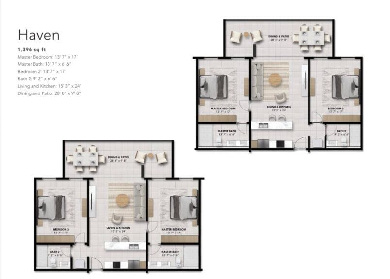 The Oasis, offering 1,145 sq ft of luxury, or the Haven, providing a generous 1,396 sq ft, ensuring the perfect fit for every lifestyle.