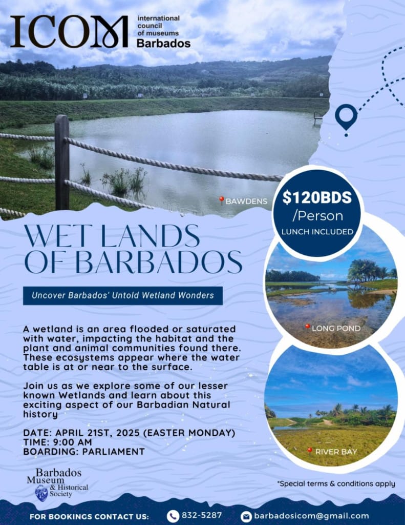 Nature lovers, this one’s a hidden gem! Join ICOM Barbados and the Barbados Museum & Historical Society on a guided bus tour exploring the island’s lesser-known wetlands. Discover: